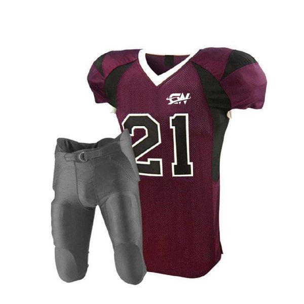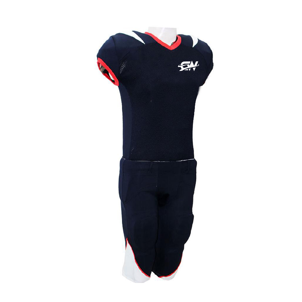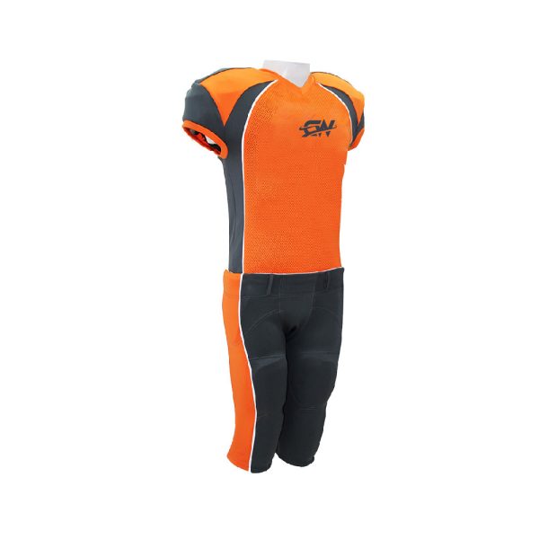 Sublimated football jerseys start out solid white and your custom design is printed into the fabric. There is a flat price for all customization including individual player names and numbers.